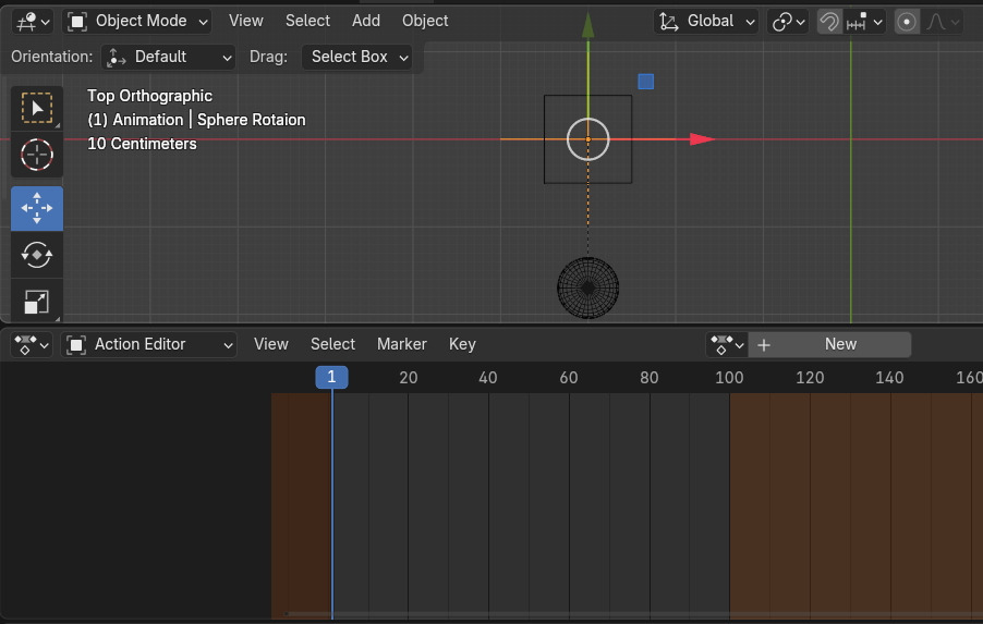 그 아래 전체 프레임을 차지 않는 Sphere Ani를 선택해서 Tab키를 클릭해서 Edit 수정 환경으로 들어갑니다.