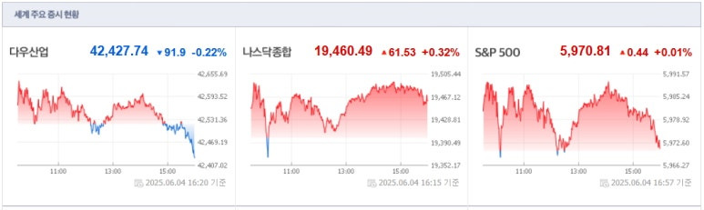 2025년6월4일(수) 미국증시 마감요약