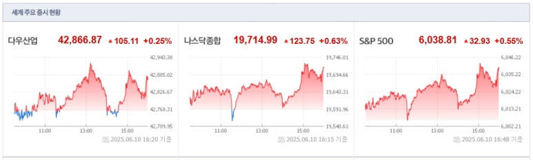 2025년6월10일(화) 미국증시 마감요약