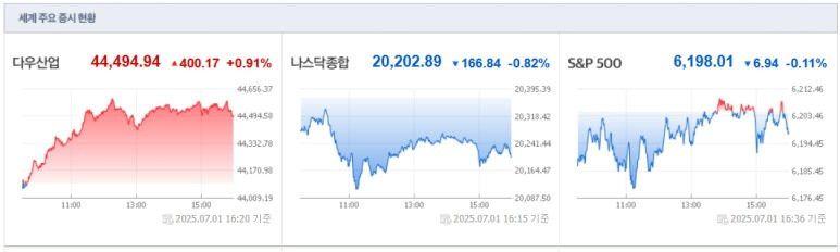 2025년7월1일(화) 미국증시 마감요약