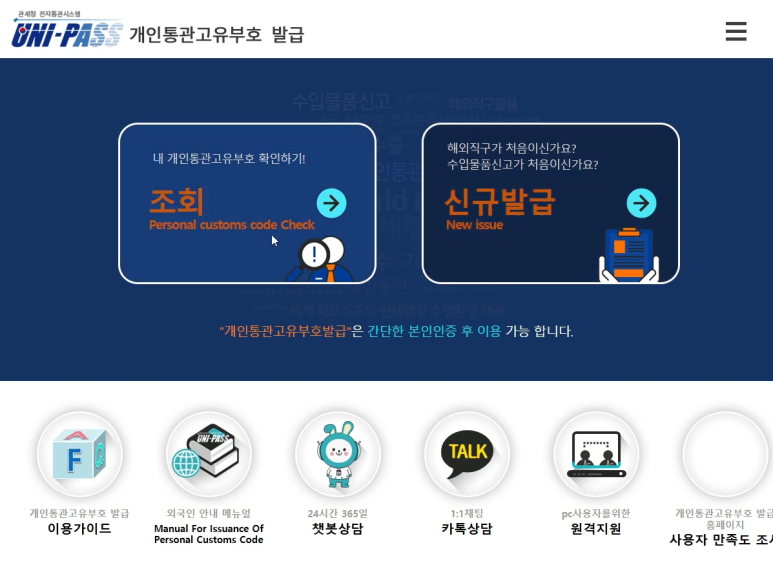네이버에 '개인통관 고유번호 발급' 이라고 검색하면, 관세청 홈페이지 링크가 나옵니다. 링크 주소로 접속합니다. 정확한 명칭은 '개인통관고유부호' 이군요.
