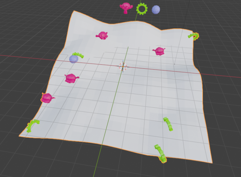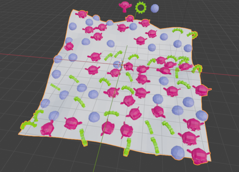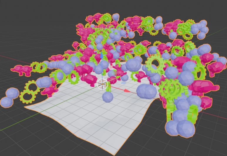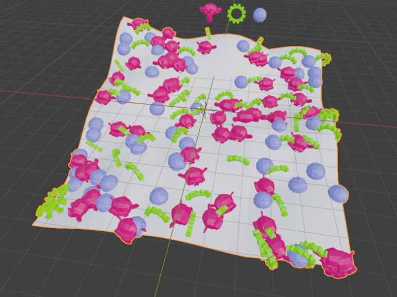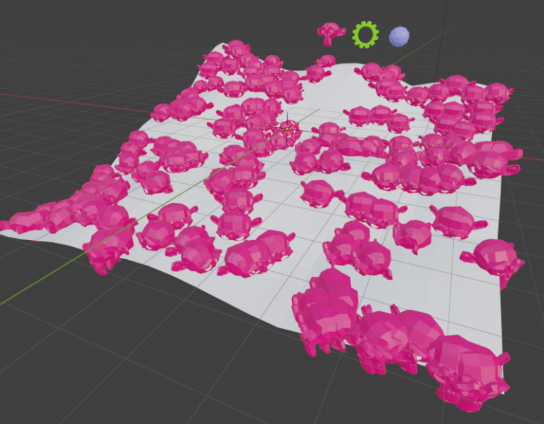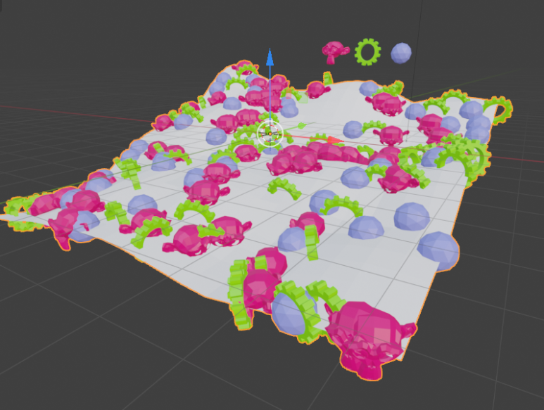 그러면 바닥 메쉬에 밀착되어서 Collection2의 오브젝트들이 분산됩니다.