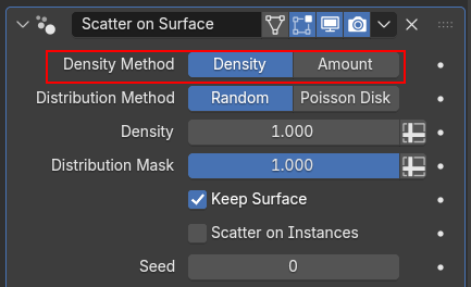 기본 값은 Density, Distribution Method 는 Random 입니다.