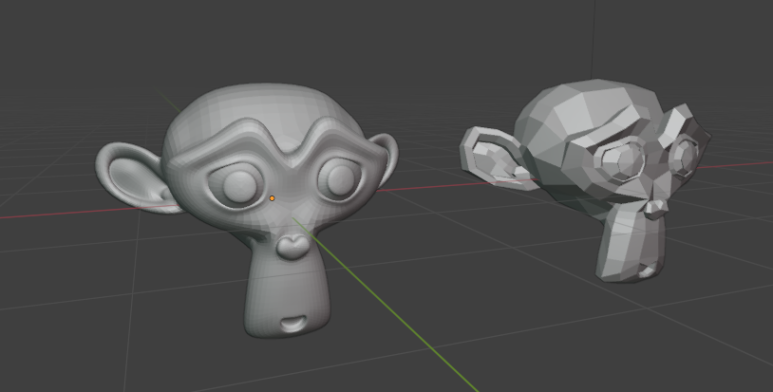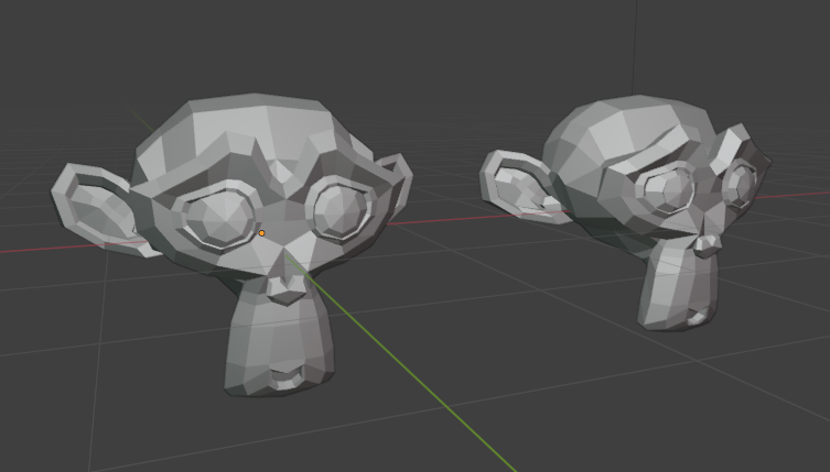 왼쪽이 Subdivision 이 적용된 Cube, 대체 Suzanne 입니다.