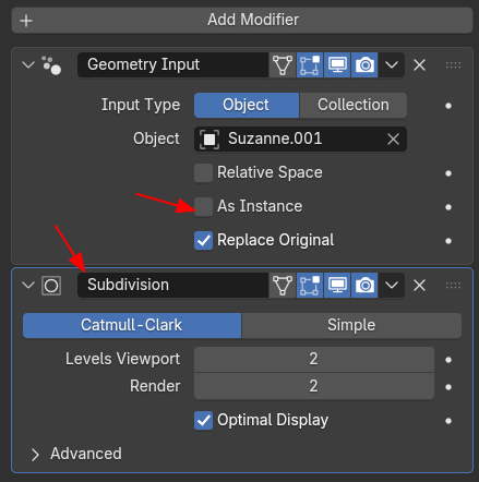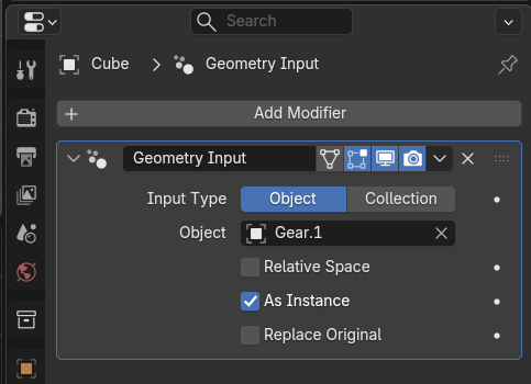 Geometry Input노드는 복잡한 오브젝트를 대체하고, 그리고 모디파이어 스택을 더 쌓을 수 있습니다.