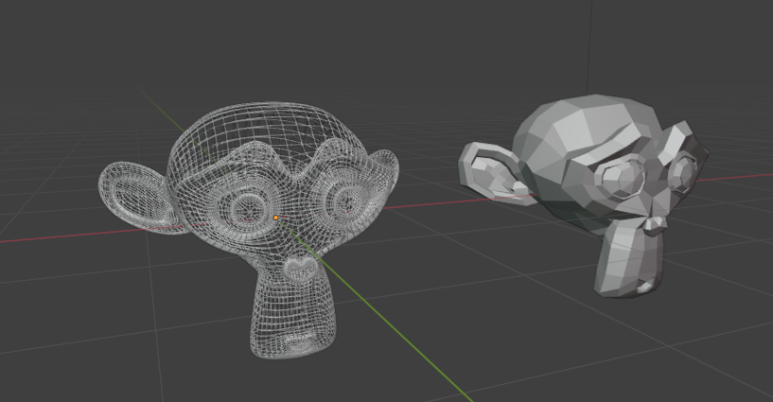왼쪽은 Geometry Input이 적용된 Cube이고, 왼쪽은 Suzanne Mesh 입니다.