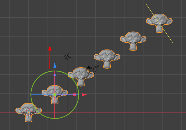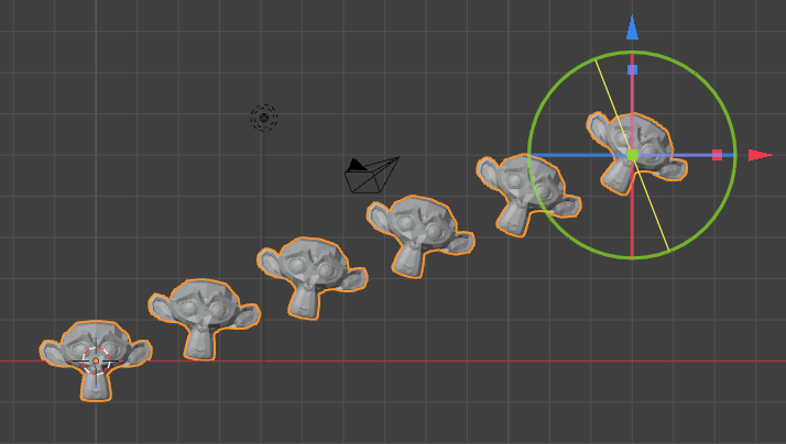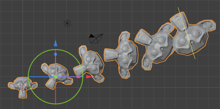 중간의 기즈모로 Z축으로 이동 시키면, Z축으로 이동한 거리만큼 다음 메쉬에도 적용되어, 마치 계단식으로 누적되어 표시됩니다.