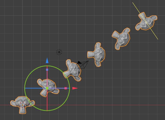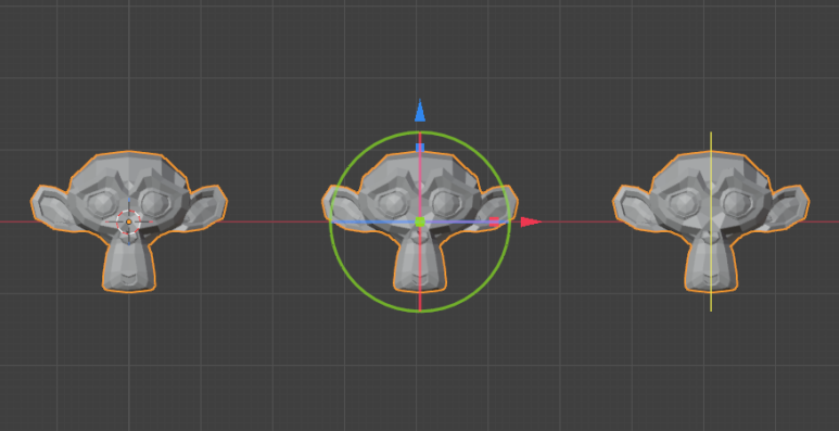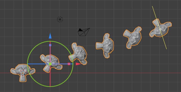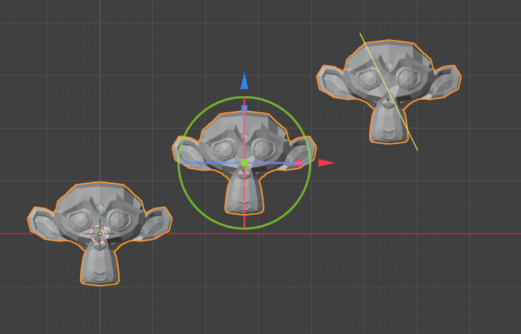회전 기즈모를 사용하면, 적용한 회전 값 만큼, 누적되어 다음 메쉬에 적용되어 회전 됩니다.