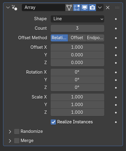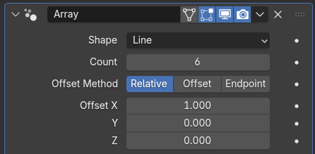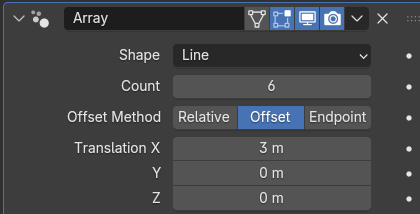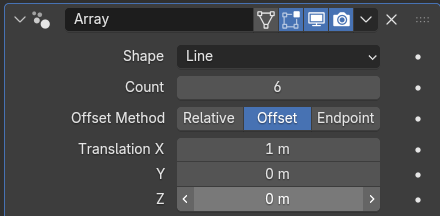 다음은 Offset Method 를 Offset으로 합니다. 이번에는 Translation X, 1m 간격으로 나열됩니다.