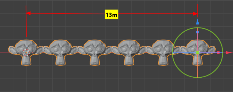 아래와 같이 메쉬들의 피봇을 기준으로 3m 씩 배치 됩니다.