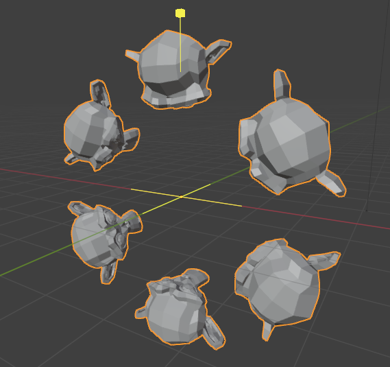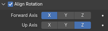 Align Rotation은 기본적으로 활성화 되어 있습니다. 그래서 메쉬, 수잔이 옹기종기 모인듯한 모습으로 되어 있습니다.