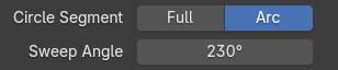 Arc로 전환하면, 주어진 갯수 Count 메쉬를 Sweep Angle 각도 안으로 모읍니다.