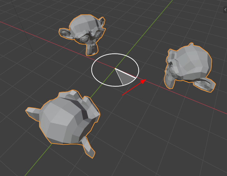 아래는 Y축(녹색) 방향을 원형 중심축으로 설정한 모습.