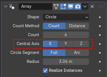 Centeral Axis는 Array Circle의 중심축 방향을 선택합니다. 기본 값은 Z축입니다.