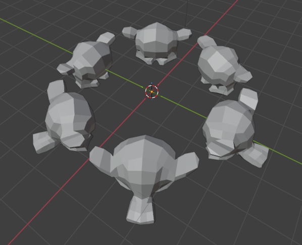 그러면, 지름 3m의 반경으로 5개의 메쉬가 원형으로 배치 됩니다.