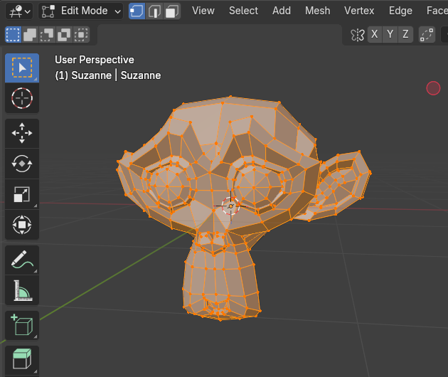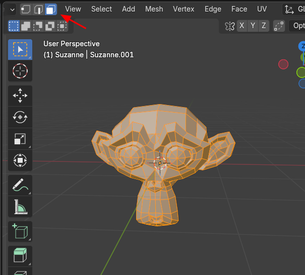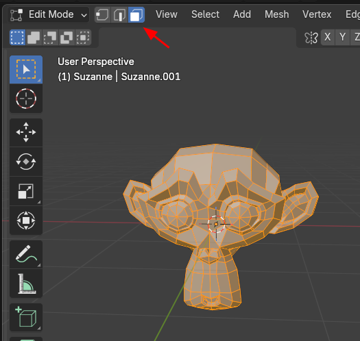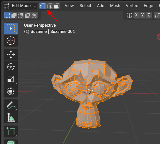 3D Viewport의 Selection mode, Face 상태인데,