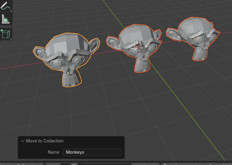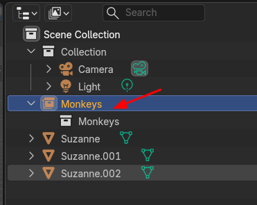 아웃라이너에 Monkeys라는 Collection Instance 를 확인할 수 있습니다.