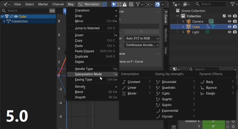5.1에서는 Key Interpolation Mode의 메뉴들의 표시에 컬러가 들어 갔습니다. ㅋㅋ