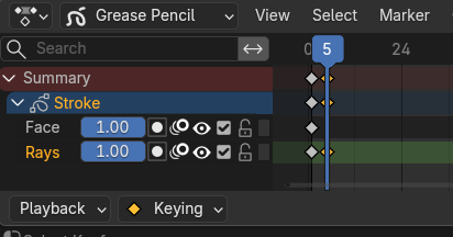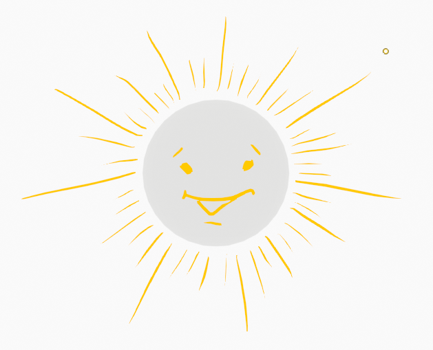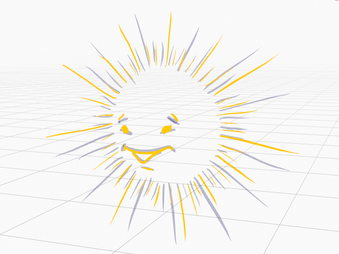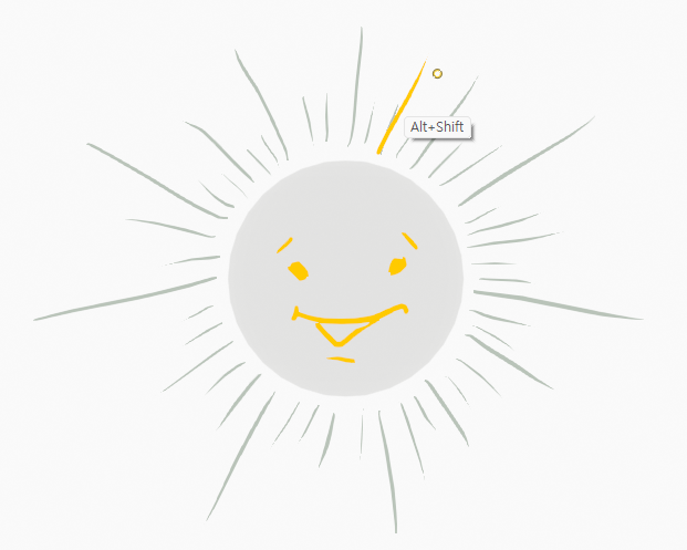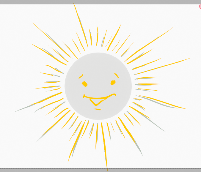 햇살의 변화를 그리기 위해 화면을 클릭하고 펜 드래그를 하면, 갑자기 1번 프레임에 있는 Rays들이 회색으로 바뀝니다. 현재 프레임의 Stroke만 자기 컬러로 보이게 됩니다. 마치 그림자 처럼 현재 프레임에 보여지고, 앞의 키프레임의 위치를 확인하며 작업할 수 있도록 해줍니다.